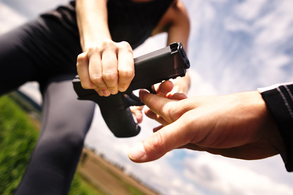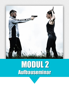 (Vorrausetzung: Modul 1) Aufbauseminar zu Modul 1 Der Seminarteilnehmer kann die Techniken zur Abwehr von Kurzhandfeuerwaffen selbständig durchführen. Er hat die zu grunde liegenden Bewegungsabläufe verinnerlicht und kann diese phasenweise fehlerfrei abrufen