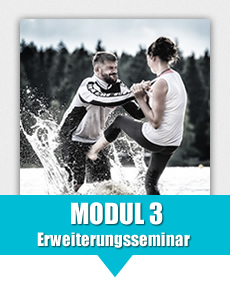 (Vorrausetzung: Modul 1 und 2) Erweiterungsseminar zum Ausbau der Techniken für Hieb und Stichwaffen Der Teilnehmer beherrscht mindestens eine Technik zur Abwehr von Kurzhandfeuerwaffen. Die Techniken für Hieb- und Stichwaffen kann er selbständig durchführen.