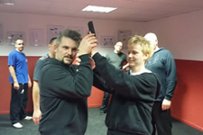 Ziel: Der Seminarteilnehmer kann die erlernten Fähigkeiten zur Abwehr von Kurzhandfeuerwaffen unter Anleitung durchführen und die theoretischen Grundlagen mit eigenen Worten wiedergeben.
