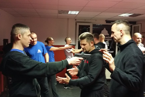 Ziel: Der Seminarteilnehmer kann die Techniken zur Abwehr von Kurzhandfeuerwaffen selbständig durchführen. Er hat die zu grunde liegenden Bewegungsabläufe verinnerlicht und kann diese phasenweise fehlerfrei abrufen